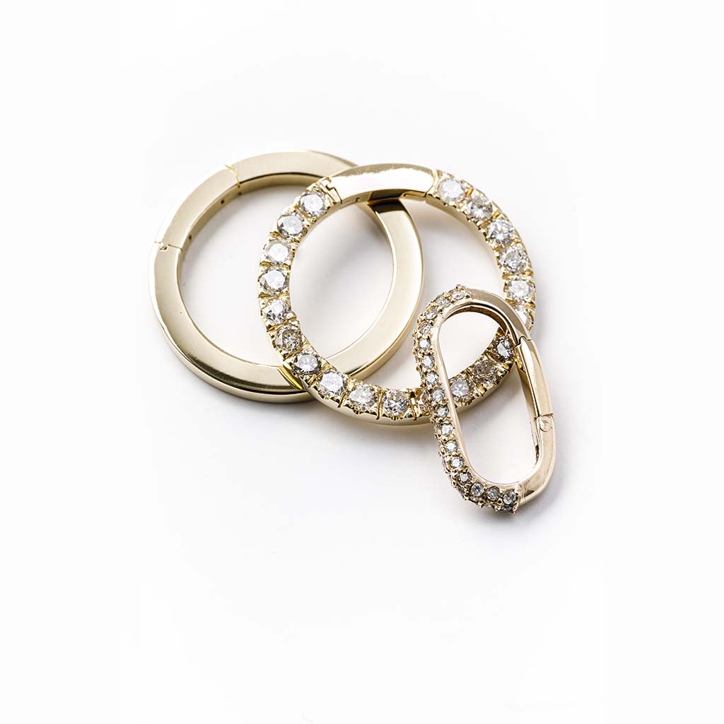 - Dije circulo en oro con un sistema para abrir y cerrar que sea seguro.