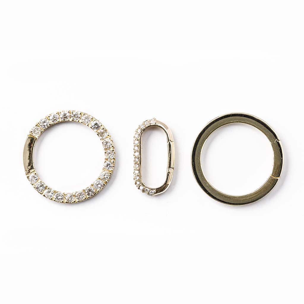 - Dije de clip en oro con diamantes de 1 punto, con un sistema para abrir y cerrar.