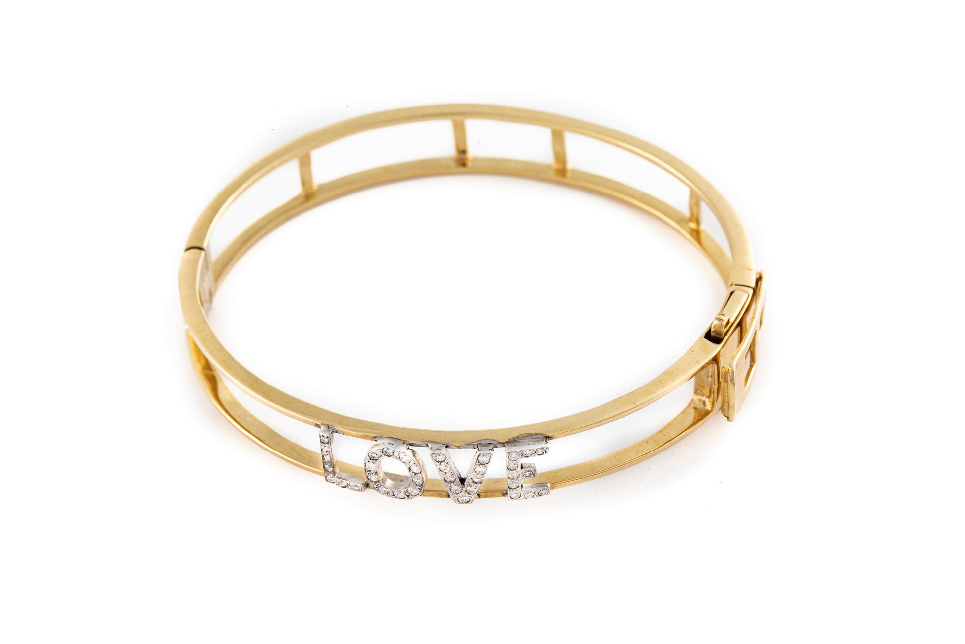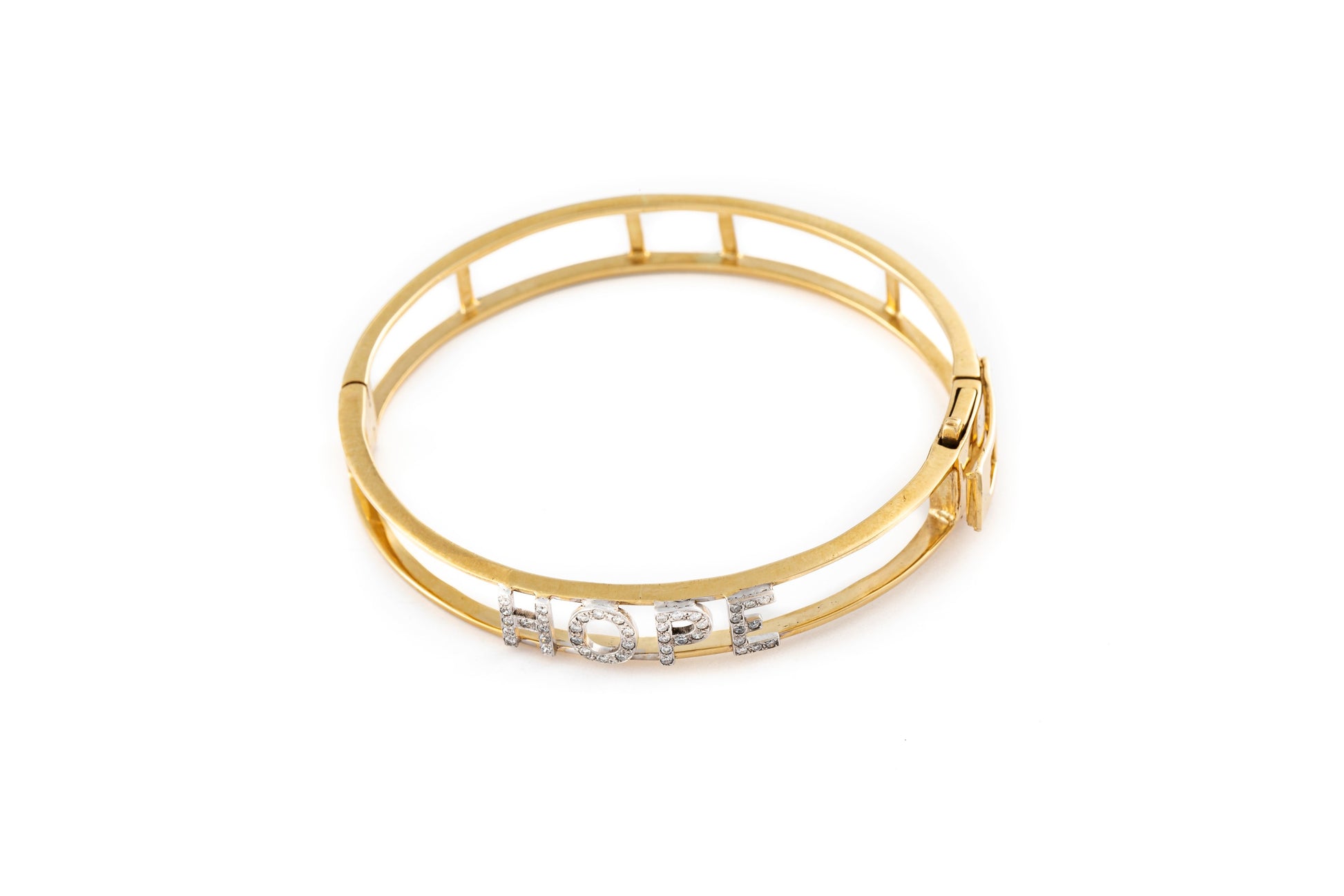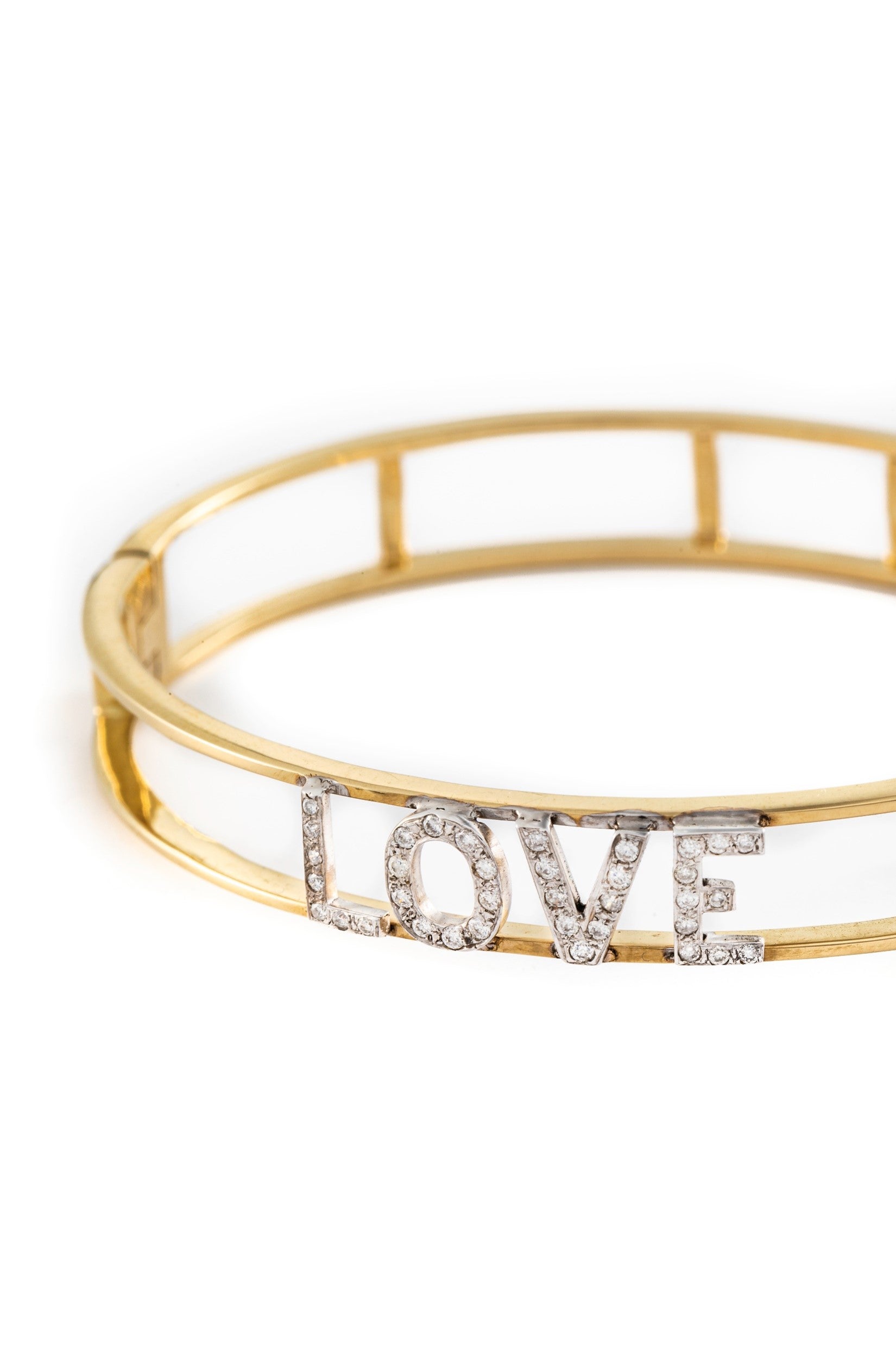 Pulsera de 4 letras en oro amarillo de 14K con diamantes de 1mm y un ancho de .7cm