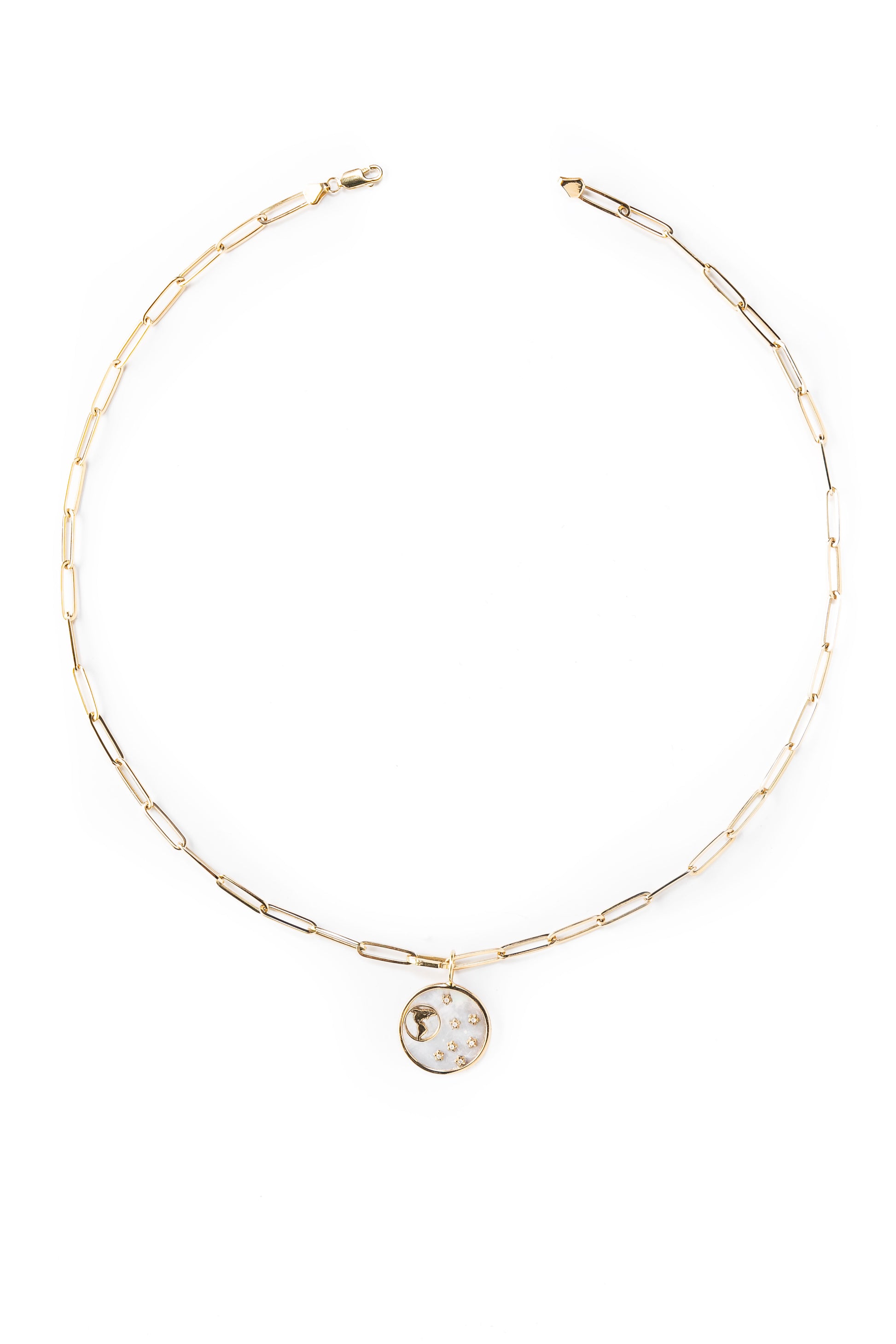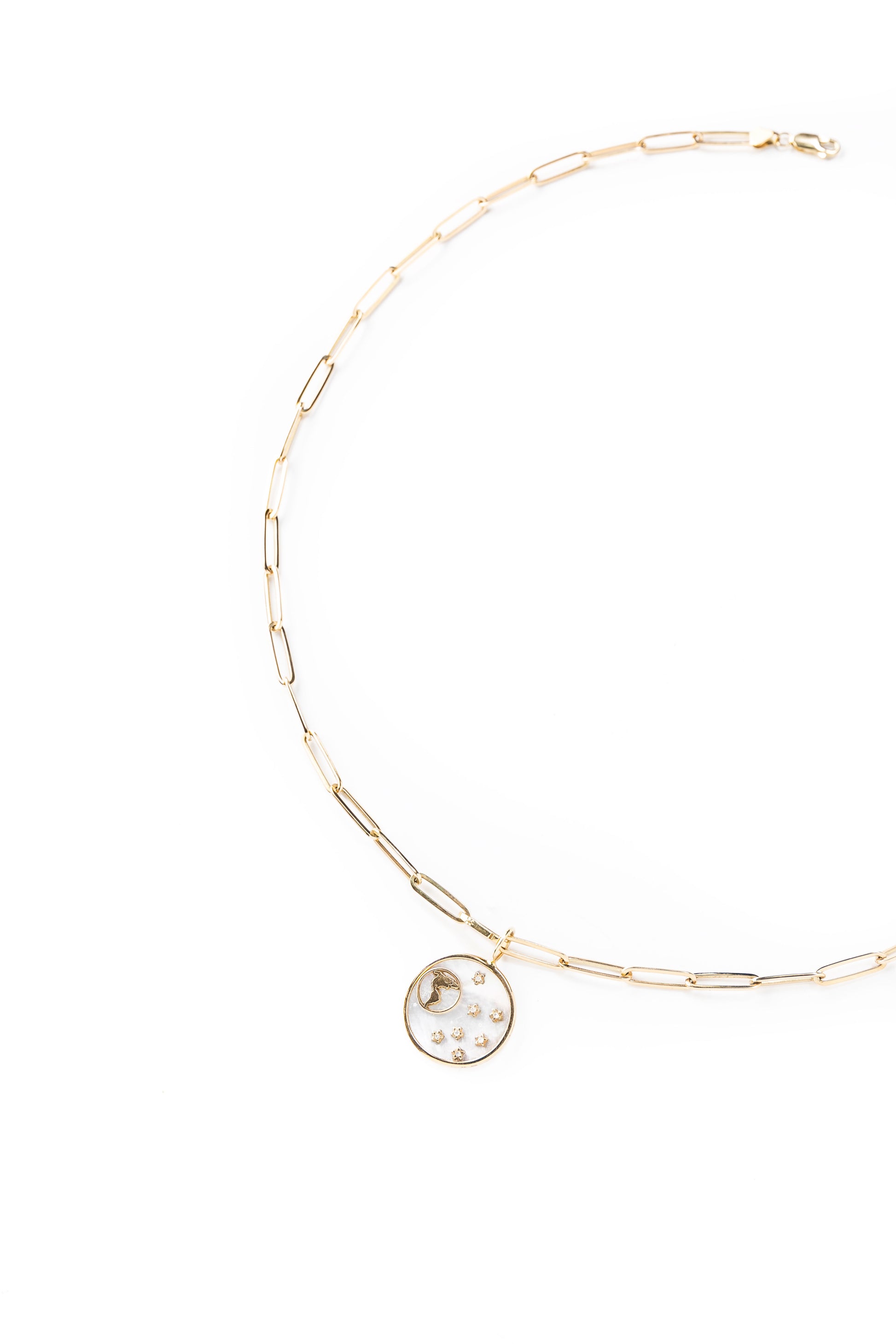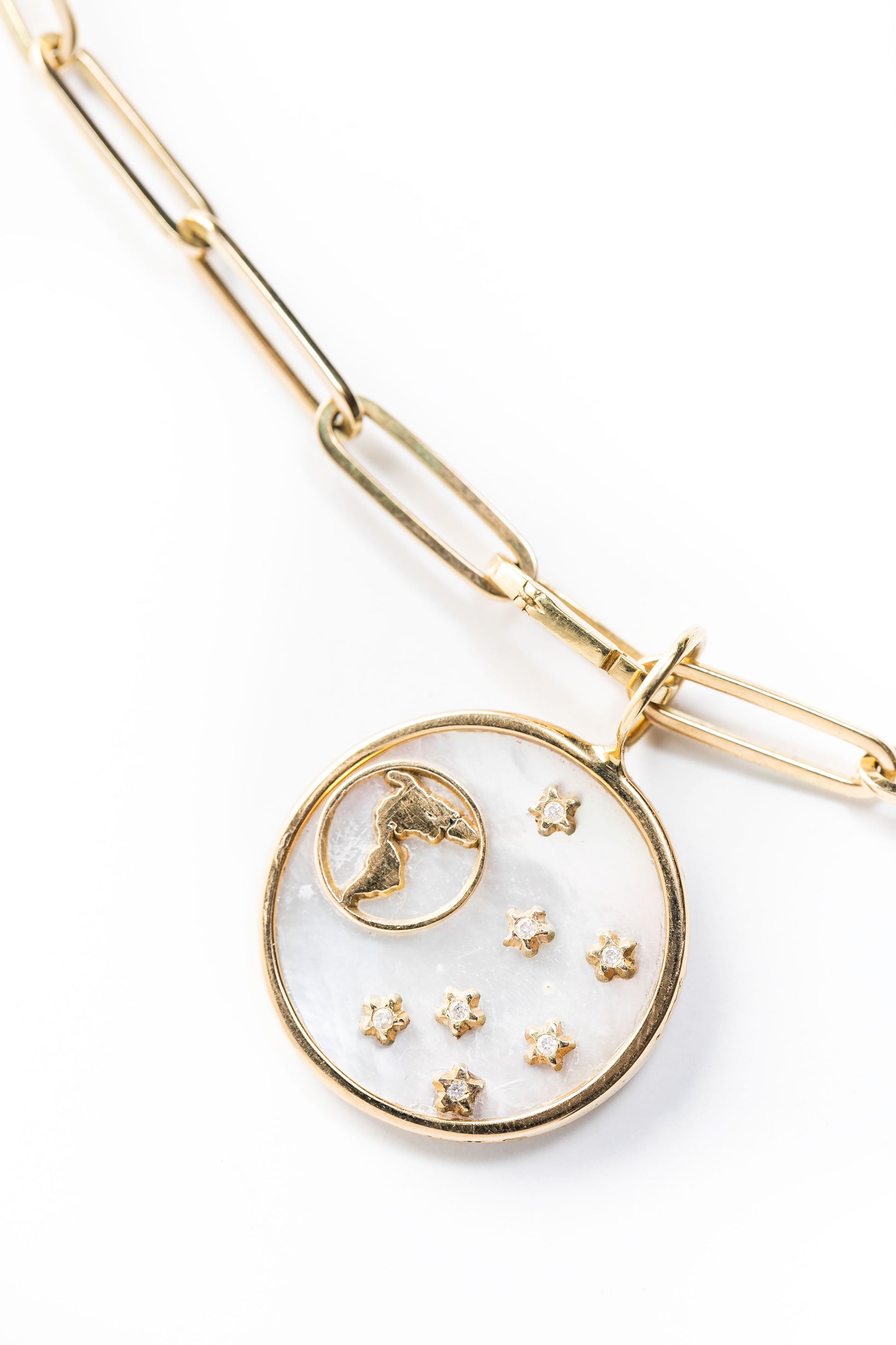 Charm de concha nácar en oro con diamantes de 5 puntos.